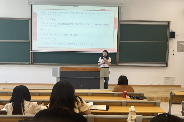 为进一步加强党员队伍建设,提高党员的政治素质和党性修养,5月14日下午,人文社科系党支部在勤学楼105组织开展了党的六大纪律专题学习活动。本次学习由人文社科系党支部副书记叶绘主讲,全体党员参加。