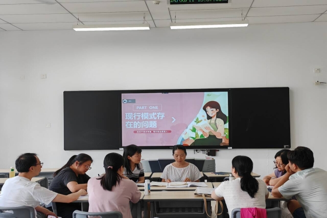 接着,大家围绕“准备——说课——讲课——评课”教研模式展开了讨论。大家达成以下共识:一、须精心选择研讨主题,并及时将研讨方案实施于后续的教学中;二、须针对实施情况进行分析反思,进一步改进方案;三、做好“准备——说课——讲课——评课”新教研模式实施情况的记录,形成监督约束制度。
