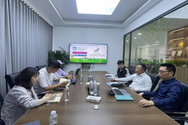 走访团队首先来到江苏高领碳信工业互联网有限公司。在公司负责人的陪同下,专业负责人详细了解了高领碳信在金融碳核算领域的创新实践和技术优势。