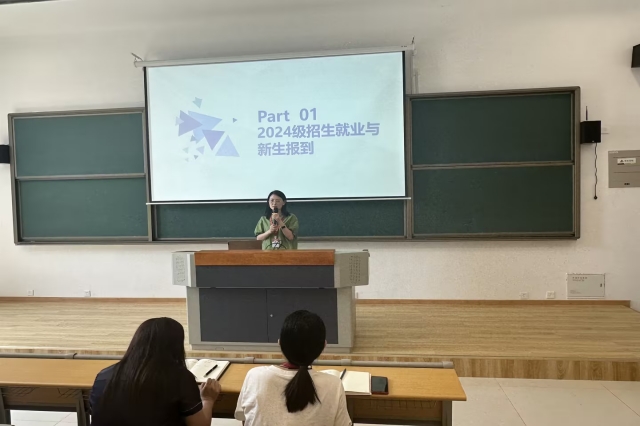 会议伊始,人文社科系党支部副书记叶绘围绕着2024级招生就业与新生报到工作进行详细部署。她表示辅导员要加强对学生的思想政治教育,关心学生的学习和生活,帮助学生解决实际问题。同时,要加强学生日常管理,严格执行校规校纪,营造良好的学习氛围。