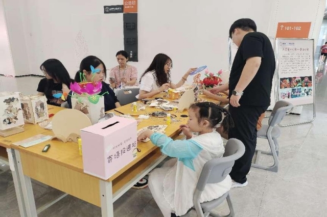 “看非遗,迎新生”栏目成为了本次迎新的一大亮点。在张萌老师的带队下,新生们有幸现场制作秦淮花灯和锦灰堆。秦淮灯彩历史悠久,汲取了众多传统艺术之长,种类多样,从传统的荷花灯、狮子灯到与时代紧密结合的花灯作品,无不展现着其独特的魅力。锦灰堆作为中国传统艺术珍品之一,以其古朴典雅、耐人寻味的风格吸引着同学们。通过亲手制作,新生们领略到了非遗的独特魅力,了解了丰富的非遗文化知识,增强了文化自信,让“非遗之花”在校园里精彩绽放。