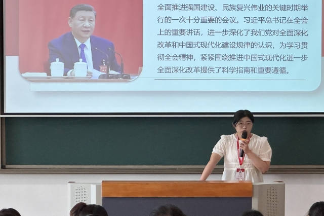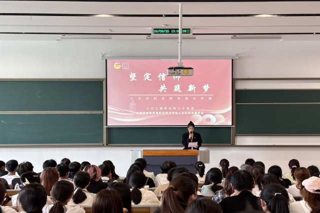 为了及时传达党的二十届三中全会精神,确保学生紧跟时代步伐,2024年9月25日中午14:00,人文社科系团委在善学楼102开展“坚定信仰,共筑新梦”新思想公开课。活动由人文社科系团委兼职副书记徐金莹同志主持,思政中心毛莉老师授课,人文社科系在校团员参加学习。