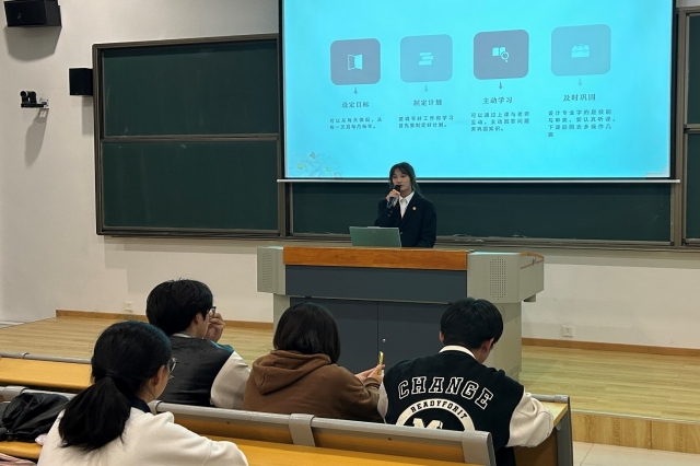 接着,张书雯同学分享了自己在学科竞赛中屡获佳绩的宝贵经验。从选题、组建团队的方式,到比赛过程中心态调整的方法,她毫无保留地将自己的技巧传授给大家。她提到,面对困难与挫折时,要始终保持乐观和坚韧的心态,把每一次挑战都当作是成长的机遇。
