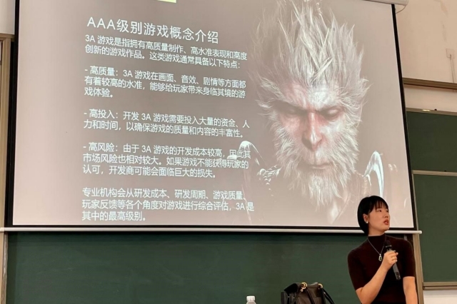 讲座开场,徐倩倩总监就为新生解读数字媒体技术行业现状。她详细列举了动画设计、游戏开发、交互媒体、影视后期等主要岗位,深入分析了这些岗位的市场需求和薪资待遇。还通过剖析行业内的优秀案例,使新生们对专业的实际应用和职业发展有了更直观的感知。