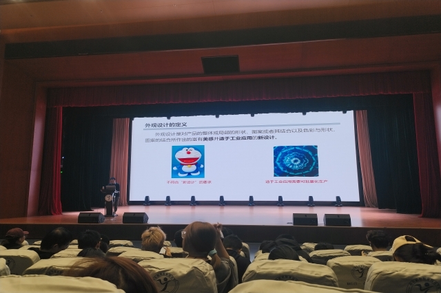 讲座围绕外观专利的定义与分类、申请文件的准备、申请流程等内容展开,现场气氛热烈。主讲人从日常生活中常见的产品外观设计入手,使同学们对外观专利有了直观的认识。对于专利申请流程,主讲人通过清晰的图表和生动的案例,为同学们展示了从准备材料到提交申请,再到审查等各个环节的注意事项。同时,强调了知识产权保护的重要性,鼓励同学们在今后的学习和生活中注重创新,并积极保护自己的智力成果。同学们聚精会神,不时记录重点内容。