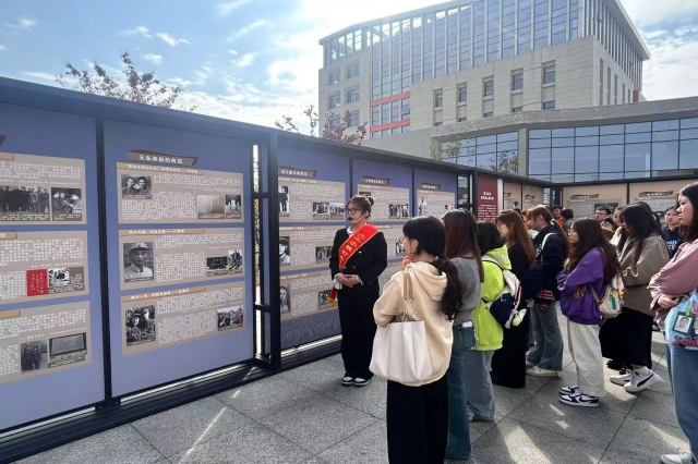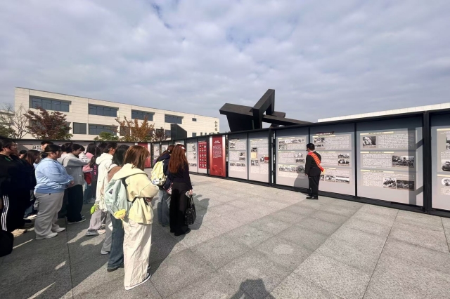 为深入学习贯彻习近平文化思想和党的二十届三中全会精神,党委宣传部联合纪委办公室在开云手机官方版页面登录入口鲁班广场举办了“崇高风范清廉丰碑——新四军廉洁思想文化史实展进校园”系列活动,11月14日下午2点,人文社科系组织开展党建带团建观展活动。参与人员有人文社科系党支部副书记叶绘,系部党员老师以及50名大一大二学生代表。