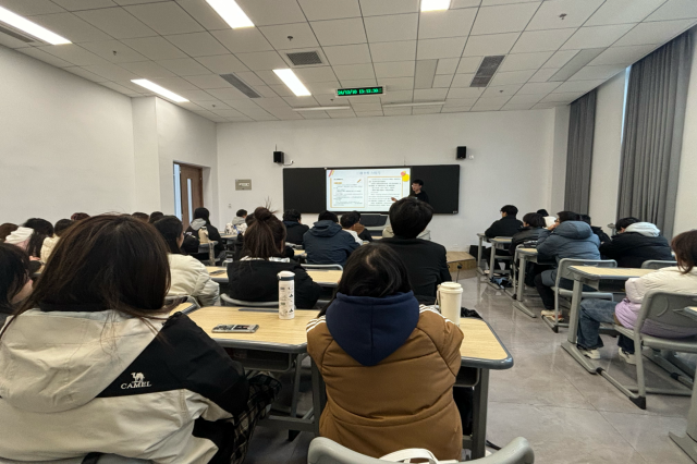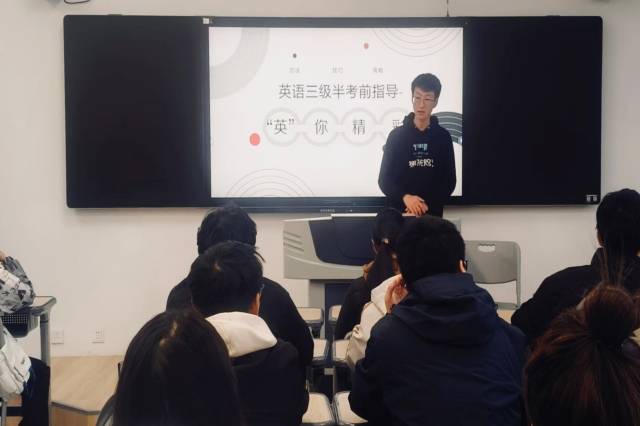 为落实教育部《高职高专教育英语课程教学基本要求》,提高我校高等学校英语应用能力考试(简称三级半)通过率,帮助考生熟悉考试节奏,减轻考前焦虑,克服备考过程中的困惑,英语第二课堂“蓝岛英”英语角于2024年12月10日在善学楼209举办了英语备考冲刺指导交流会。