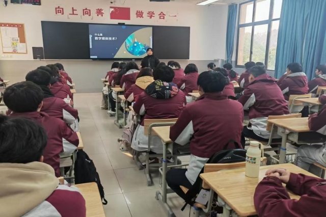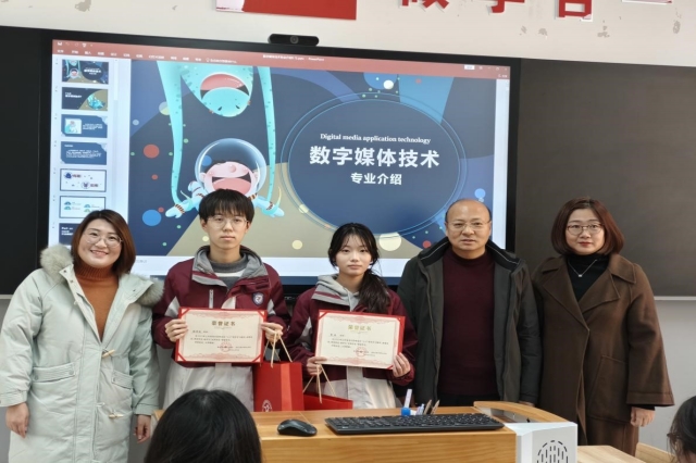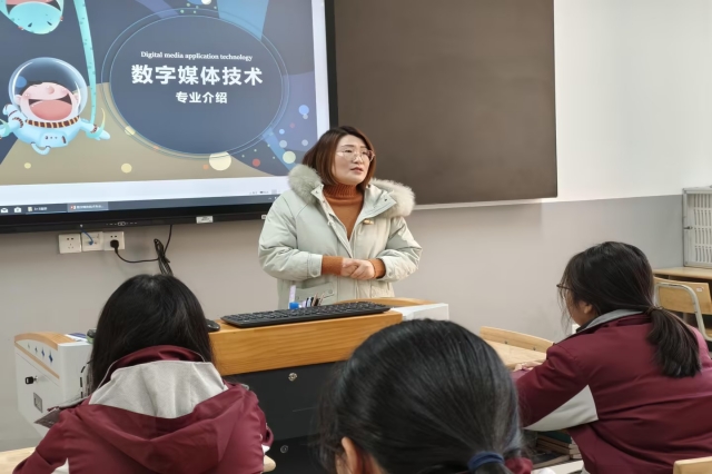 随后,数字媒体技术专业负责人郝逸萱给计算机中班3+3新生带来了精彩的“新生第一课”。郝老师通过生动有趣的讲解和丰富的图文资料,从学校规模、办学特色、专业概况、合作企业、学习内容、优秀学子、升学渠道以、就业前景及3+3转段要求等多个方面进行了详细介绍,并向学生们展示了学长学姐的优秀作品,激发了新生对专业的热爱和对未来的憧憬。