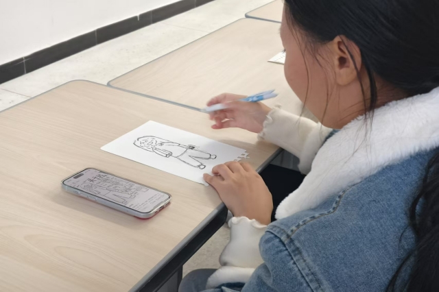 随后,在“我的自画像”环节中,同学们通过绘画,将自己的内心感受和自我认知具象化。这一过程不仅激发了同学们的创造力,还帮助他们更直观地表达和理解自己的情感状态。通过艺术形式,同学们将平时难以言说的情感和想法都显现在图中。