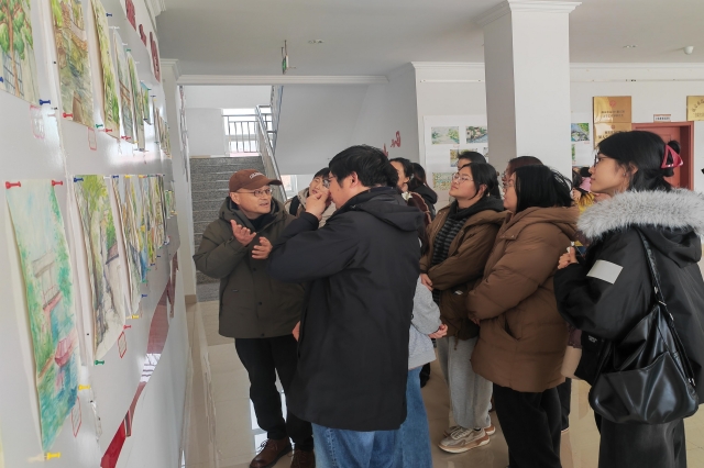 最后,备受期待的“水美乡村新画卷——新年画展”拉开序幕。此次画展作品为开云手机官方版页面登录入口人文社科系视觉传达设计专业学子们在高淳区阳江镇潦田村东角庙开展写生的实践成果,参展作品84幅,有风景水彩、风景速写、风景创意装饰画等。他们怀着对阳江镇的热爱之情,深入小镇的每个角落,用敏锐的观察力与细腻的笔触,将阳江镇潦田村的一草一木、一砖一瓦、一人一景生动地呈现在画布之上。