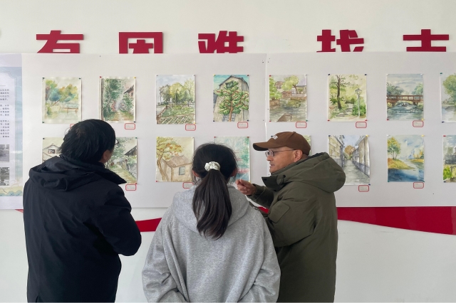 现场,高淳区文联卞洪广副主席与区美术协会李剑鸣主席对学生的画作进行了精心的点评与指导,并对整体学生作品呈现出的创作热情给予了高度肯定,称赞同学们能够走出校园,深入阳江镇这片充满韵味的土地,用心去感受、去捕捉每一处值得描绘的景致,这种对艺术实践的积极态度难能可贵。
