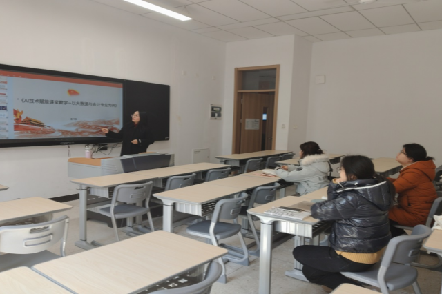 为适应数字化时代的教育需求,进一步推动专业教育教学工作与AI技术的深度融合,提升教学质量,2025年2月18下午,会计教研室在博学楼109召开了“基于AI赋能的智慧课程建设研讨”为主题的教研活动,会议由薛蓓蓓老师主持。
