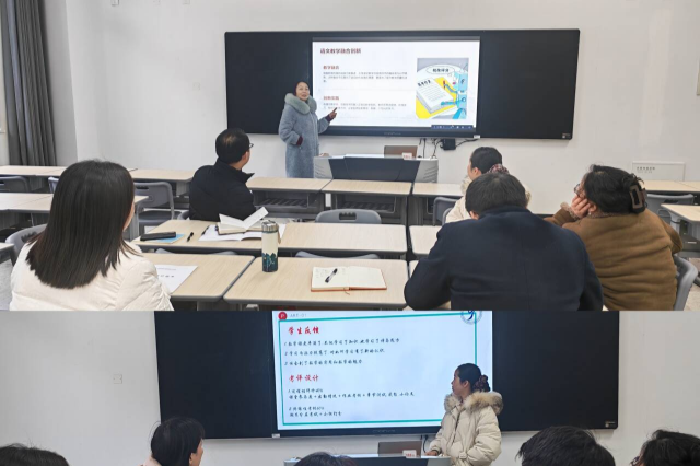 首先,蔡云老师展示了教学设计汇报的内容,从教学目标与任务、教学方法与手段、教学过程与安排、教学评价与反馈等几个方面展开汇报。其他教师们就各自的教学设计,展开了热烈讨论。
