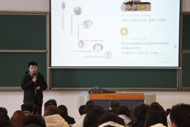 当日下午一点半,善学楼201教室座无虚席。高淳陶瓷股份有限公司的金牌讲师李方浩以深厚的行业知识和丰富的实践经验,为视觉、环境和数媒专业的同学们带来了一场陶瓷文化盛宴。李方浩讲师从陶瓷的历史演变、工艺革新到现代应用,全方位展示了陶瓷文化的独特魅力与行业发展前景。在讲解过程中,他不仅分享了陶瓷艺术在不同历史时期的风格特点,还介绍了现代陶瓷工艺在材料创新、设计理念等方面的突破。同学们沉浸其中,积极提问互动,对陶瓷艺术有了更深层次的理解和认识。