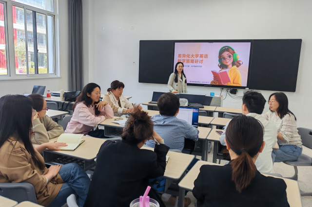 2025年4月15日下午,人文社科系英语组全体教师在博学楼112,召开本学期第9次教研活动研讨会,会议的主题是“差异化大学英语教学策略研讨”,会议由陈兰老师主持。