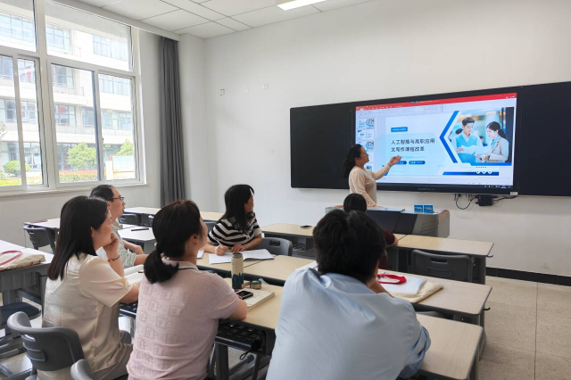 2025年5月27日下午,数学和语文教研室在博学楼108围绕“人工智能与高职应用文写作课程改革”开展专题研讨活动,积极探索新时代高职应用文写作教学的新路径。会议由朱燕老师主持,教研室全体老师出席。
