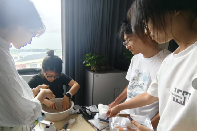 活动现场,专业教师杜婷婷从金箔制作技艺的历史渊源切入,详细讲解“捶打万次成箔”的传统工艺流程图,揭示金箔技艺中“千锤百炼”的文化内涵。杜婷婷表示:“我们希望通过实践让学生认识到,非遗传承不是简单的技艺复制,而是融入时代审美的再创造。”