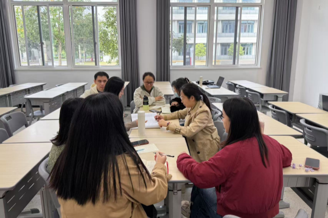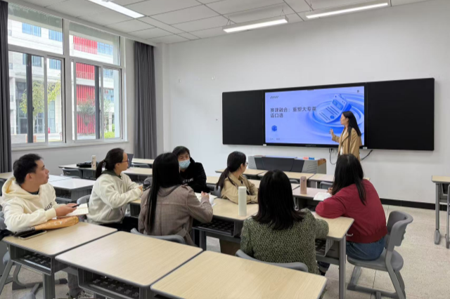 在交流研讨环节,有的老师提出,赛课融合教学应注重差异化设计,针对不同专业学生的职业发展需求,定制贴合专业场景的竞赛式教学内容,让英语口语学习更具针对性与实用性;还有老师围绕教学评价体系构建、竞赛训练与常规教学时间分配、教学资源整合利用等问题提出思考,大家相互启发、共同探讨,形成了多项切实可行的教学优化思路。
