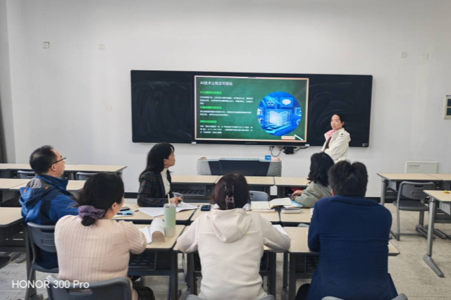 2025年10月28日下午,数学和语文教研室全体老师在博学楼108开展了“AI 技术在课堂教学中的应用”教学研讨会,会议由查雪华老师主持。