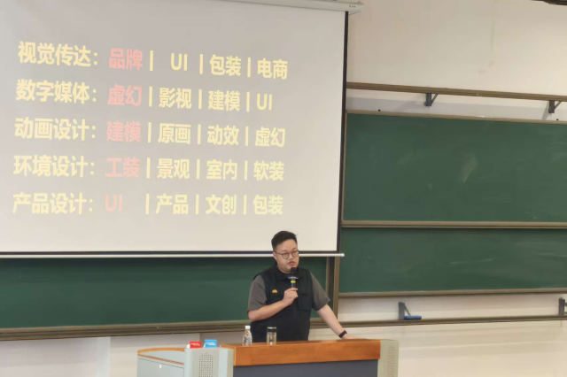 在核心内容分享环节,顾老师围绕数字创意行业的影视制作、UI设计、数字媒体、动画创作等细分领域,系统解析了不同岗位所需的“硬技能工具”与“软创作思维”,通过UE虚拟拍摄技术案例演示,让同学们直观感受行业前沿技术的应用场景。针对学子求职与创业需求,他还详细拆解了优质简历与作品集的构建逻辑,强调“教育背景+实践成果+专业技能+综合素养”的全方位展示思路,并用学生真实案例辅助讲解,为同学们提供了可操作的自我提升方案。整场讲座既有行业宏观趋势分析,又有具体实操指导,内容翔实、干货满满,赢得了同学们的热烈反响。