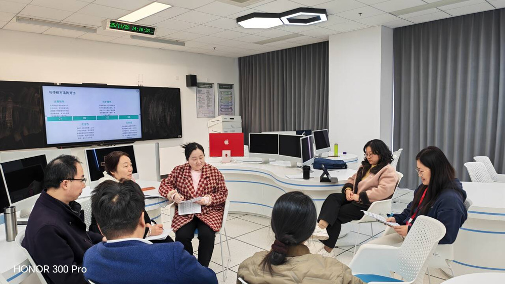 其次,教研室各位老师针对AI制作课程简介这一主题,展开了充分的讨论,提出了许多新的看法与观点。大家一致认为:第一、课程简介需要把 “一师一课” 的核心目标说透,目标是让他们掌握微积分、概率论等基础理论,还要培养用数学思维解决专业问题的能力。第二、课程简介里得把这些目标分点梳理清楚,再结合课程模块,比如理论讲解、案例分析的占比,让老师和学生都能明确学习方向。第三、从技术角度,得突出 AI 赋能的特色。“一师一课” 有智能情景对话、课后陪练功能,让学生知道有技术支持保障学习效果。