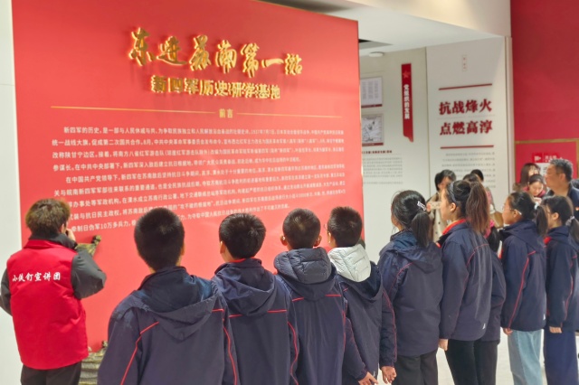 随后,队伍步行前往东进苏南第一站—新四军历史研学基地,开启红色历史研学之旅。在研学基地讲解员的带领下,大家认真聆听新四军在苏南地区的战斗故事,仔细端详珍贵的历史文物、详实的文献资料和生动的影像图片,仿佛穿越时空回到了那段烽火连天的峥嵘岁月。革命先辈们为民族解放事业不畏艰险、英勇奋斗的精神深深感染着每一位参与者,让红色基因在参观学习中潜移默化地融入青少年的精神血脉。
