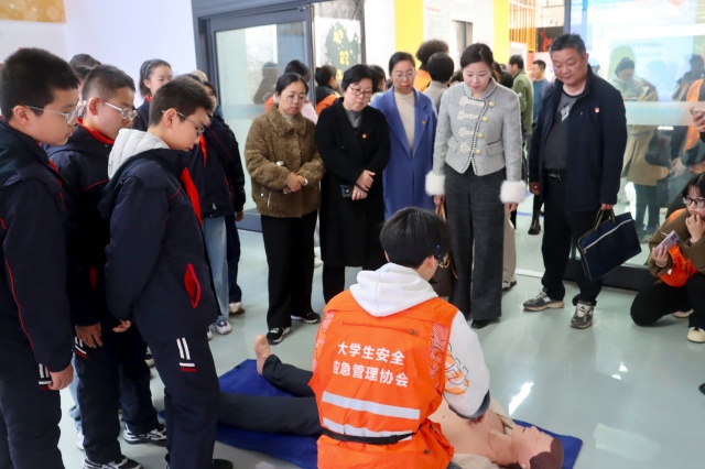 活动开始,全体人员前往学校安全应急教育体验中心开展第一阶段学习。在专业人员的引导下,同学们通过沉浸式体验、实操演练等方式,系统学习了消防安全、应急避险、应急救护等实用知识与技能。从灭火器的正确使用到紧急疏散的规范流程,从模拟场景的风险预判到应急处置的协同配合,每一个环节都让参与者受益匪浅,有效提升了大家的安全防范意识和应急自救能力。