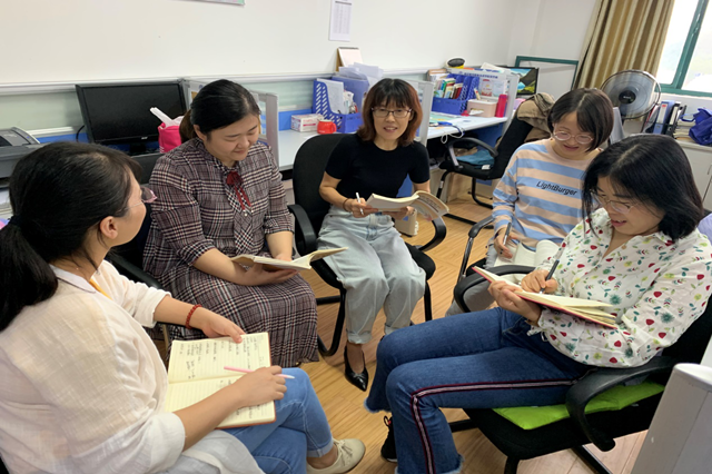 首先,董志鸿老师剖析了教材的整体结构和特点,提出要夯实备课基本功,牢牢把握教材内容,教学要结合实际。紧接着,高杉老师针对教学内容设置,结合实例,注意事项等方面进行了分享。整个会议过程中,各位老师都建言献策,气氛热烈、平等和谐,积极表达自己的观点,提出了很多切实有效的建议,共促研讨会的顺利开展。