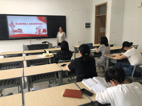 2021年5月25日,思政中心在思学楼111召开第十一周教学研讨会。本次教学研讨会的主题是革命精神融入《毛概》课的教学研究,主讲人是赵姗姗老师。