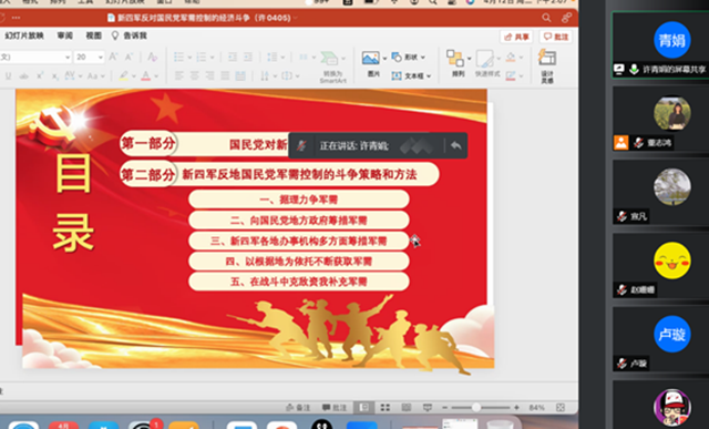 首先,董志鸿老师向大家汇报了《铁军精神十讲》、《铁军精神纵横谈》、《铁军精神创新与发展》三门课程建设的进程以及大家的选题情况。