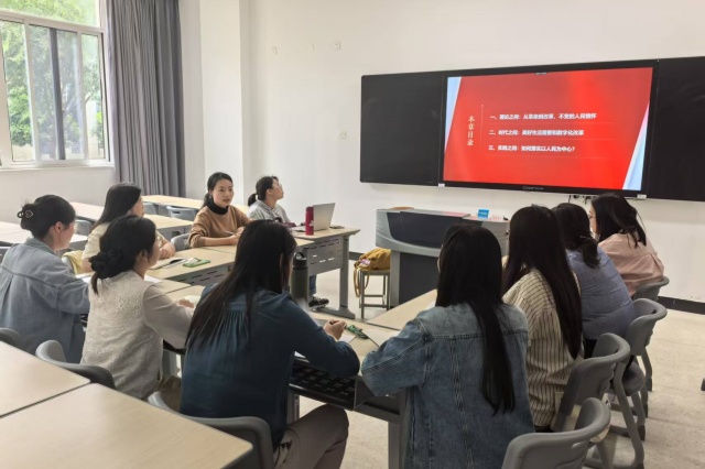 2025年5月6日下午,马克思主义学院在博学楼107开展本学期第12周教研活动。本次教研活动由李一敏老师主持,主题为“坚持以人民为中心”专题教学设计研讨。