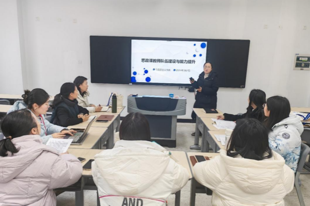 为进一步探讨新时代思政课教师的发展路径,提升思政课教师的教学水平和综合素质,3月4日下午,马克思主义学院全体教师在博学楼107开展教研活动。此次活动由赵姗姗老师主持。