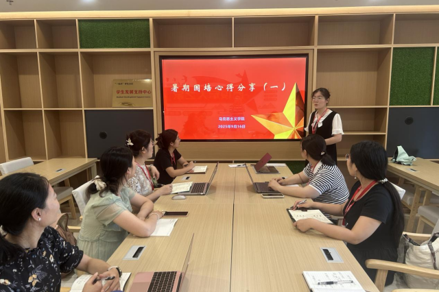2025年9月16日下午,马克思主义学院在一站式服务大厅召开了教学研讨会,会议由章鑫旖老师主持,主题是“暑期国培心得分享”。此次教研会旨在分享教师在培训中学习的AI软件,聚焦AI技术在思政课备课、授课、评价等环节的创新实践,通过技术赋能推进思政课教学改革。