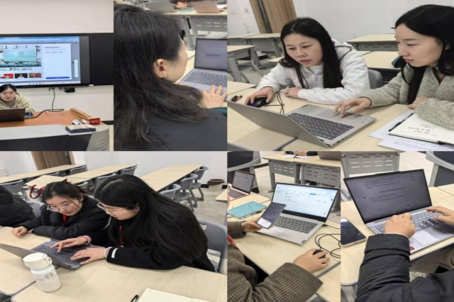 老师们结合自身建课模块,分组进行AI工具实操演练。过程中,大家相互交流操作技巧,分享遇到的问题与解决方案。老师们在实操中切实感受到AI技术为课程建设和教学工作带来的便利。