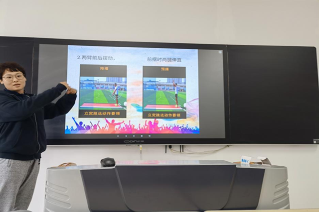 2021年4月27日下午,体育教研室全体教师在思学博学楼105教室开展——如何提高学生在大学生体质测试中立定跳远成绩的研讨,会议由余嵇媛主持。