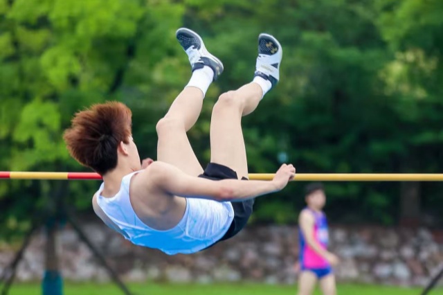 机械工程系郭加政在跳高赛场挑战自我,以突破个人最佳成绩的表现斩获第七名,用腾空的弧线书写青春的突破。