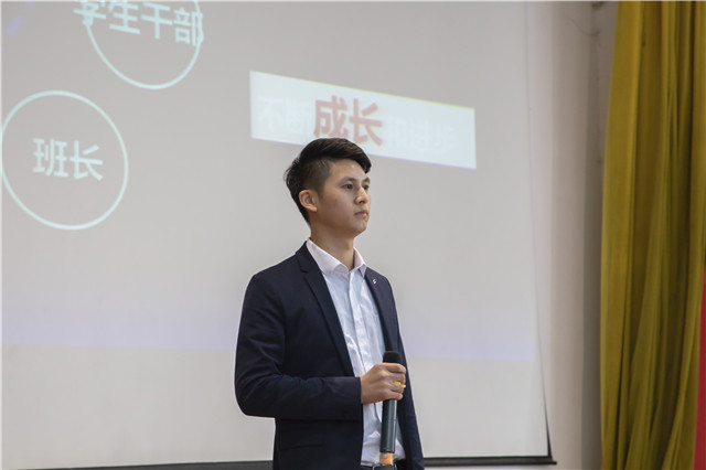 院团委秘书长刘鹏飞向我们分享了一些对学生干部的看法以及作为一名学生干部的要求,责任和经验。在发言中用Link.Live.Love.三个单词来表达对新生干事的寄托与期望。院团委副书记胡奔奔的发言中转述了潘书记的一席话,告诉我们政治信仰,知行合一,敢担当,不怕吃苦,老实做人,告诉我们共产主义与其他信仰的最大区别在于共产主义关注现实,关注社会与人民。优秀毕业生代表徐健健更是告用红军长征两万五千里这样一个生动形象故事,告诉我们目标,责任,坚持等的重要性,让学生干部有自己的目标和坚持。
