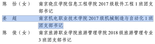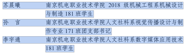 为表扬先进,树立榜样,引导和激励全市广大团员、团干部和各级团组织奋发进取,再创佳绩,共青团南京市委决定授予我院机械工程系苏晨曦同学、人文社科系孙言同学、人文社科系李宇通同学“南京市优秀共青团员”称号,团委金慧敏老师“南京市优秀共青团干部”称号,机械工程系姜超同学“南京市优秀团支部书记”称号。
