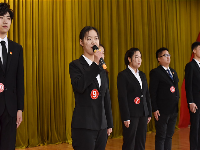 在学院党委的领导下,各系部团总支的积极参与下,本次大赛由学院团委发起,历时一个月,通过各班级、系部层层选拔,最终产生十名选手晋级决赛。比赛由主题演讲和材料评述两部分组成。主题演讲以往期青年大学习内容为主,着重从缅怀抗美援朝英烈、学习五四精神,学习习近平总书记围绕青少年和共青团工作发表的一系列重要论述、全面打赢脱贫攻坚战、同心战“疫”,同“屏”共振等五个方面,激励和引导同学们在疫情防控常态化的形势下,树立崇高的理想,积极践行社会主义核心价值观,勉励同学们继承抗美援朝先烈意志,激扬向上的青春活力,积极投身到实现中华民族伟大复兴的建设中去。比赛开始前,选手们依次上台作自我介绍,为接下来的赛事作赛前宣言。