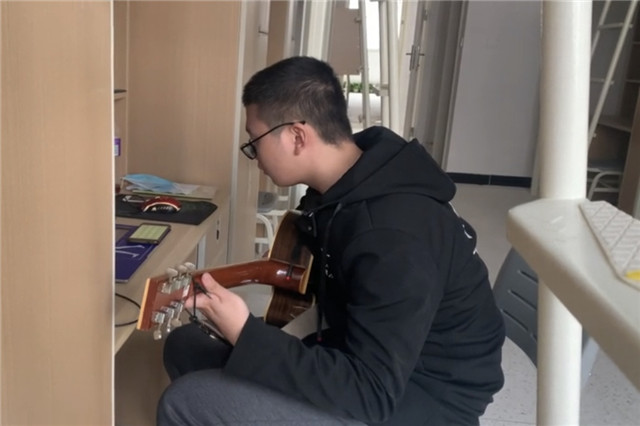 新宿舍 好心情。上床下桌满足了同学们的心愿,宿舍阿姨的贴心服务,更是帮助同学们快速入住自己的新宿舍。新学期 新梦想,新挑战 新希望。同学们迫不及待的开始布置起了“新窝”。拍摄的过程中,隐约可以听见楼里传来的吉他声。闻声寻去,竟发现一位同学收拾累了正坐在新宿舍里弹吉他。断断续续的拨动着琴弦,在暖洋洋的阳光里,竟有一丝悠悠然。