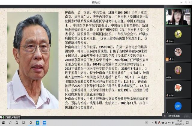 慕雪朝霜,毋改英雄意气。在这个春天,我们缅怀英雄,崇尚英雄,讲述英雄。为此,我系于3月 22日开展“讲述英雄故事”线上主题活动,此次活动由团总支书记林雪主持,党支部书记吴伟萍老师担任特邀嘉宾,共6名同学参加此次演讲活动。
