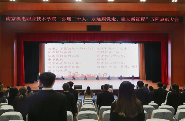 为表彰先进、树立典型,在建团百年之际充分发挥先进典型示范引领作用,进一步组织动员全校团组织和广大团员、团干部在实践中展现青春担当,以实际行动迎接党的二十大胜利召开,我校团委于2022年5月4日在星梦馆多功能厅召开“喜迎二十大、永远跟党走、建功新征程”五四表彰大会。学院领导、学工处领导、各职能处室领导、各系党支部书记、团总支书记、辅导员代表、获奖集体和学生代表出席了本次会议。会议由团委金慧敏老师主持。