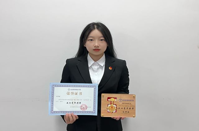 2020年荣获“军训优秀学员”,2020-2021学年在“五四表彰”中荣获开云手机官方版页面登录入口“优秀共青团员”,2020-2021学年荣获开云手机官方版页面登录入口“优秀学生干部”,2020-2021学年参与南京新工投资集团庆党百年活动获“优秀志愿者”,2020-2021学年荣获DIY社团中级成员等级认定,2021-2022学年参与寒假社会实践荣获“先进个人”,2022年参与南京疫情防控志愿者荣获南京新工医学实验室颁发的疫情防控志愿服务证书。