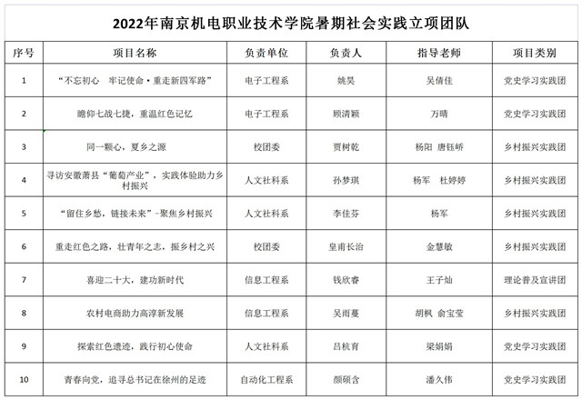 为深入学习宣传贯彻习近平新时代中国特色社会主义思想和党的十九届六中全会精神,贯彻落实习近平总书记关于青年工作的重要思想,深入学习习近平总书记在庆祝中国共产主义青年团成立100周年大会上的重要讲话精神,引导和帮助广大青年学生上好与现实相结合的“大思政课”,在社会课堂中“受教育、长才干、作贡献”,迎接党的二十大胜利召开,根据“三下乡”社会实践活动安排,经自主申报,各团总支、青马班审核推荐,校级专家评审,确定以下10个项目为2022年开云手机官方版页面登录入口暑期社会实践重点立项项目,并对立项的校级重点项目进行经费支持,现公示如下: