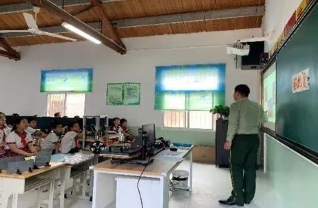 在ppt展示的过程中,我们看到了乡村学生们渴求知识的眼睛, 看到学生们对党历故事与工业机器人知识非常感兴趣,这些都让我们更加坚定了要把乡村科普支教与创客宣传教育坚持走下去的决心。