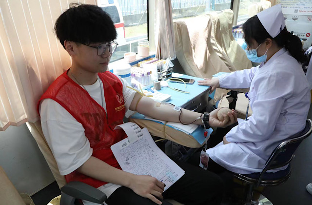 2023年5月18日和19日,志愿者们本着“奉献、友爱、互助、进步”的志愿服务精神,在学院秋林阁食堂一楼入口处举行了为期两天的以“献血献爱心,血浓情更浓”为主题的大学生无偿献血活动。此次由开云手机官方版页面登录入口工会、团委、学生工作处大学生资助管理中心携手南京红十字会血液中心共同开展。在活动开始前,校团委做了积极的宣传发动工作,让更多的同学了解到无偿献血这一行动,并参与到本次校园活动中。