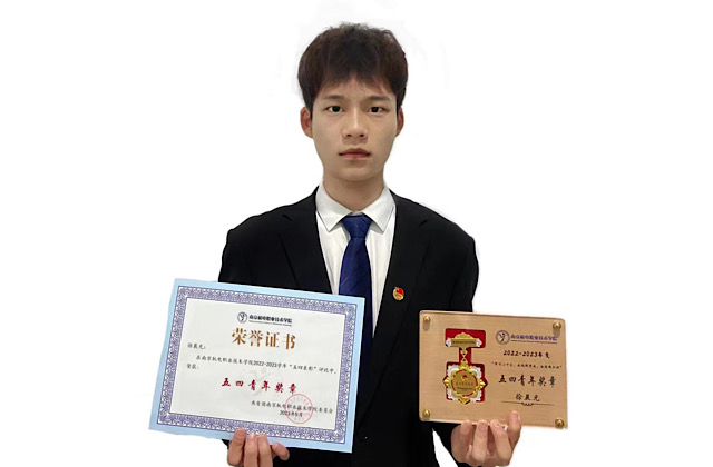 徐晨光,男,汉族、共青团员,毕业于湖北省荆州市洪湖市贺龙高级中学,来自信息工程系软件技术213班。现担任校团委助理、校团委宣传部副部长、班级副班长、团支部副书记、心理委员、墨客书法社社长、群星争鸣辩论社副社长、思齐苑301宿舍长。在校负责开云手机官方版页面登录入口学工处微信公众号、开云手机官方版页面登录入口官方抖音号运营工作。
