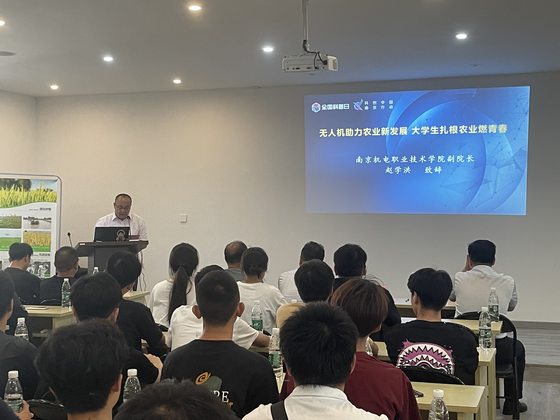 为推广无人机在农业生产中的应用,展示智慧农业领域的技术实力。9月19日, 2022级无人机应用技术专业的学生们和无人机社团的部分社员在高淳陈福明农场参加“无人机助力农业新发展,大学生扎根农业燃青春”科普日主题活动,开展无人机科普讲座、植保无人机飞行培训等系列活动。
