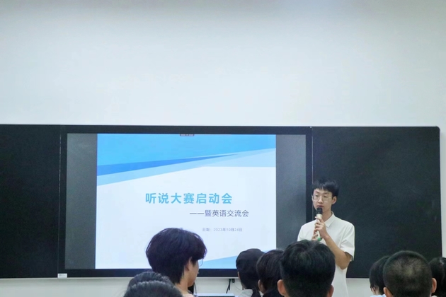 在启动会上,“蓝岛英”英语角负责人兼My Youth社团社长崔洪硕同学首先介绍了大赛的背景和目标。他讲到这次大赛旨在提供一个全方位展示英语能力的平台,让广大学生和语言爱好者们有更多机会去挑战自我、突破自我。同时,也希望通过这次大赛,激发广大学生和爱好者的学习兴趣,培养他们的语言应用能力,促进英语教育的改革与创新。