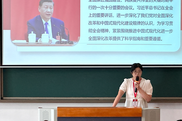 为传达党的二十届三中全会精神,确保学生紧跟时代步伐,2024年9月25日中午14:00,人文社科系团委在善学楼102开展“坚定信仰,共筑新梦”新思想公开课活动。活动由人文社科系团委兼职副书记徐金莹同志主持,思政中心毛莉老师授课,人文社科系在校团员参加学习。